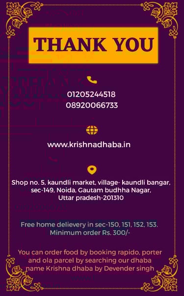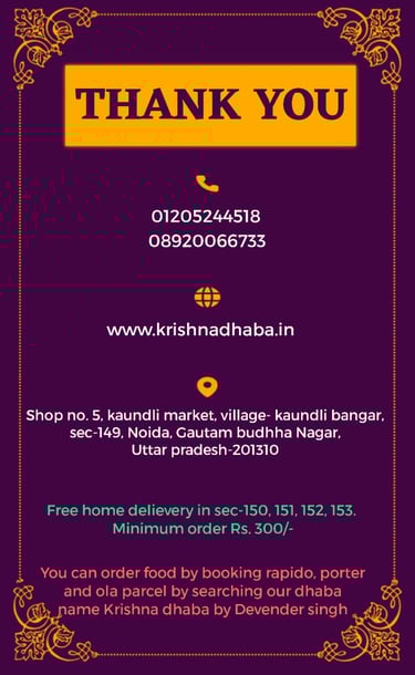 Reach out to KRISHNA DHABA by Devender Singh for delicious pure veg meals and quick delivery.